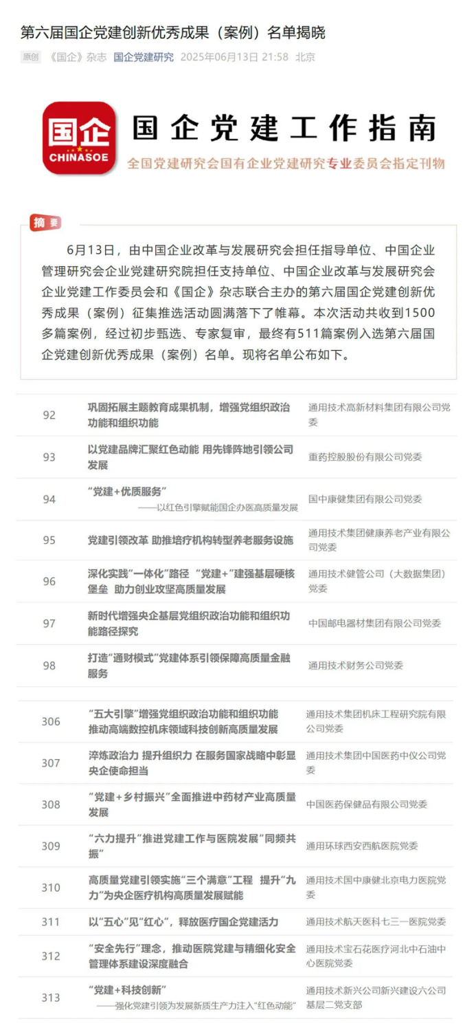近日,中國(guó)企業(yè)改革與發(fā)展研究會(huì)公布了第六屆國(guó)企黨建創(chuàng)新優(yōu)秀成果(案例)名單,通用技術(shù)集團(tuán)15篇基層黨建創(chuàng)新案例入選。