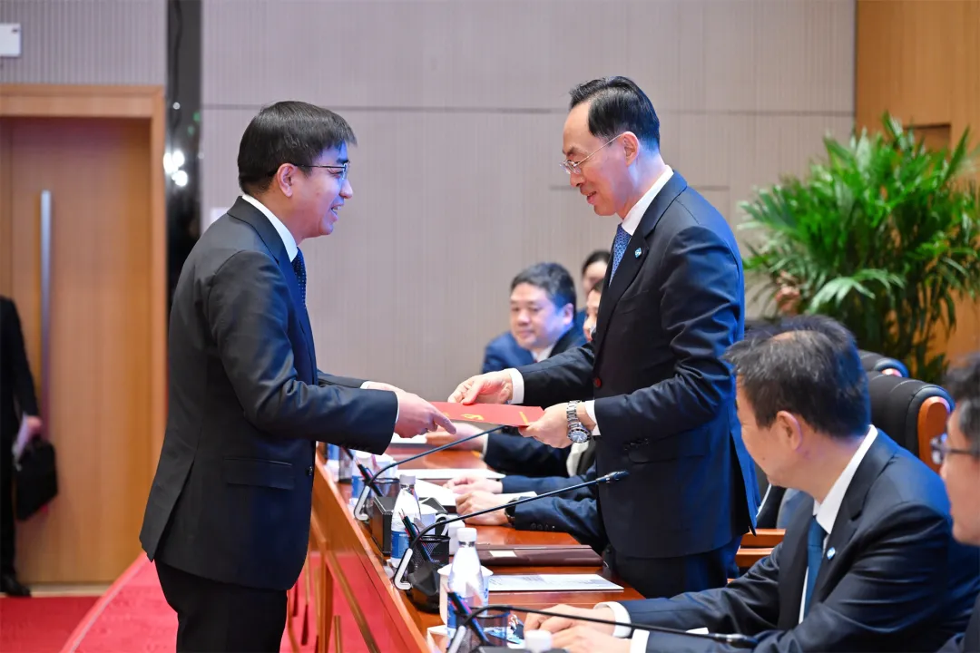 14家產業子集團、直屬二級公司主要負責人現場遞交2026年度《黨建工作目標責任書》《經營業績責任書》和《安全環保質量工作目標責任書》。